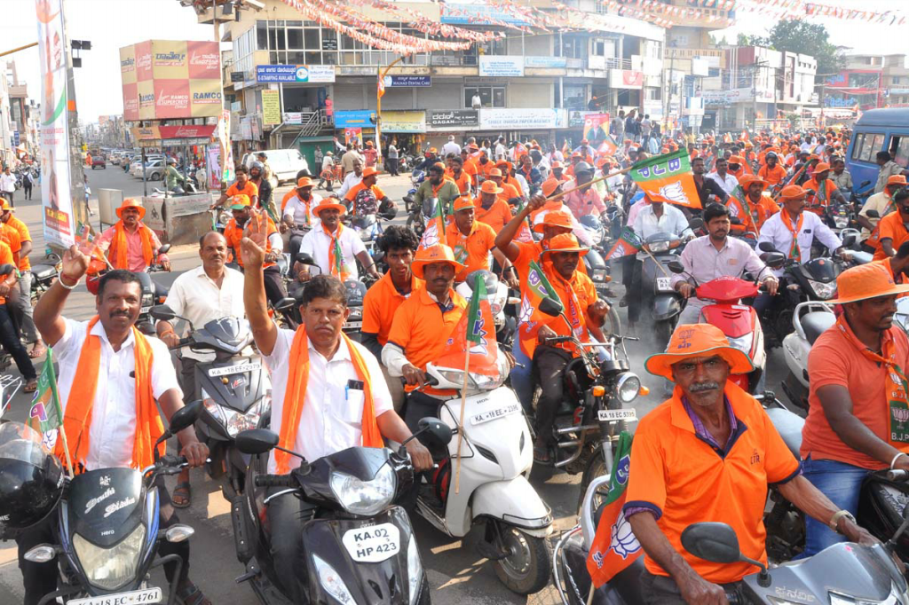 ಬಿ.ಎಸ್.ಯಡಿಯೂರಪ್ಪ ಸೇರಿದಂತೆ ಇತರೆ ಮುಖಂಡರನ್ನು ಬೃಹತ್ ಬೈಕ್ ಜಾಥಾದೊಂದಿಗೆ ನಗರದ ಬೋಳರಾಮೇಶ್ವರ ದೇವಸ್ಥಾನದಿಂದ ವಿಜಯಪುರ ಗಣಪತಿ ಪೆಂಡಾಲ್ ವರೆಗೆ ಮೆರವಣಿಗೆಯಲ್ಲಿ ಕರೆತರಲಾಯಿತು.